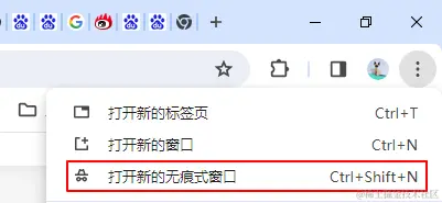 打开浏览器的无痕模式打开,打开一个新的窗口,然后进入ChatGPT,以Chrome浏览器为例,如下图,点击右上角的三个点,点击“打开新的无痕式窗口”,然后进入ChatGPT