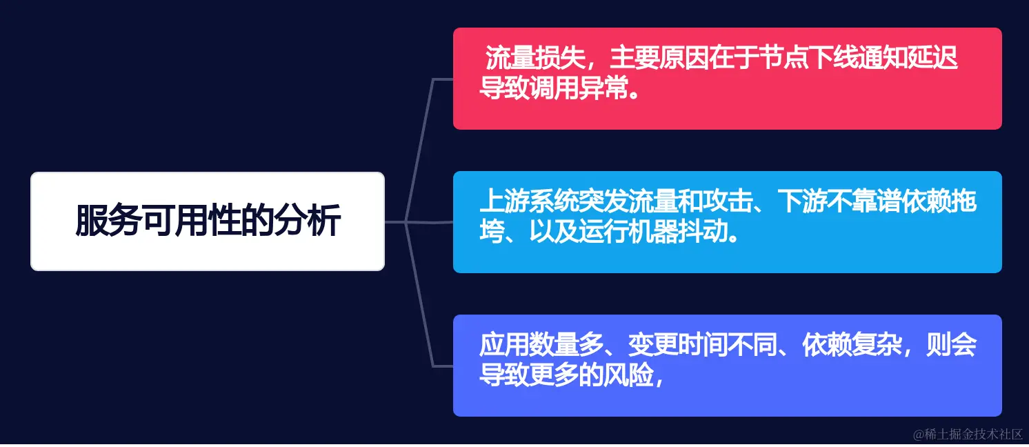 - 上游系统的突发流量和攻击、下游系统不稳定的依赖关系导致的失败,以及运行设备的不稳定性。