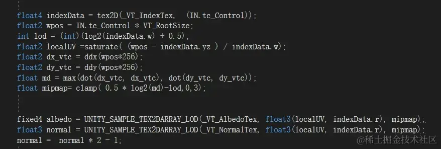 本来直接用地形Shader改改就行,但是他是每4张一个Pass,需要Blit好多次,关键是还要对这些结果做混合,像素拷贝太多了,所以这里改了下,用Texture2DArray存放地形地表纹理比如16张。一次性采样完。因为要输出Albedo和Normal2份数据,所以这里给了开关,如果要一次获得可尝试MRT,但我这里不想再展开。利用Builtin自带地形Shader的Firstpass,一次性采样完所有图层。