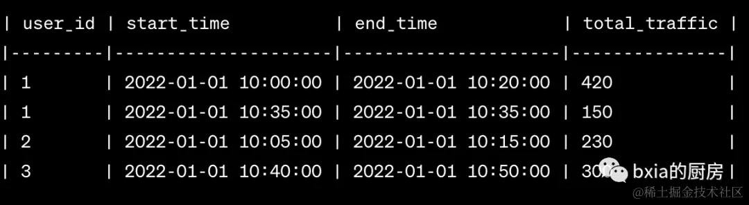 | 3 | 2022-01-01 10:10:00 | 2022-01-01 10:25:00 |