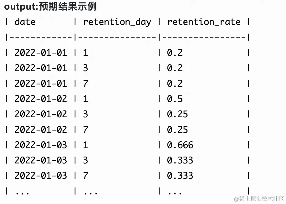 - 第N日留存率:指的是新增用户日之后的第N日依然登录的用户占新增用户的比例