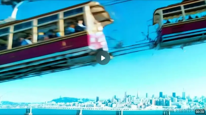 我们还可以使用 Sora 在两个输入视频之间逐步插值,在主题和场景构成完全不同的视频之间创建无缝过渡。在下面的示例中,中间的视频插接在左右相应的视频之间。