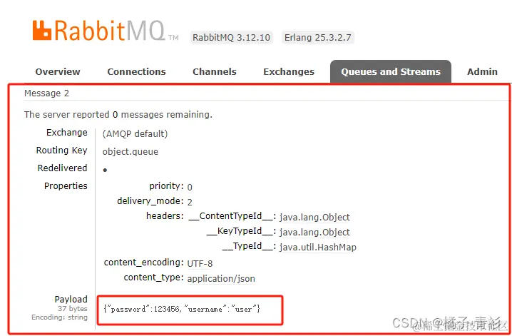 重启项目,运行测试类,并在RabbitMQ管理控制台查看消息: