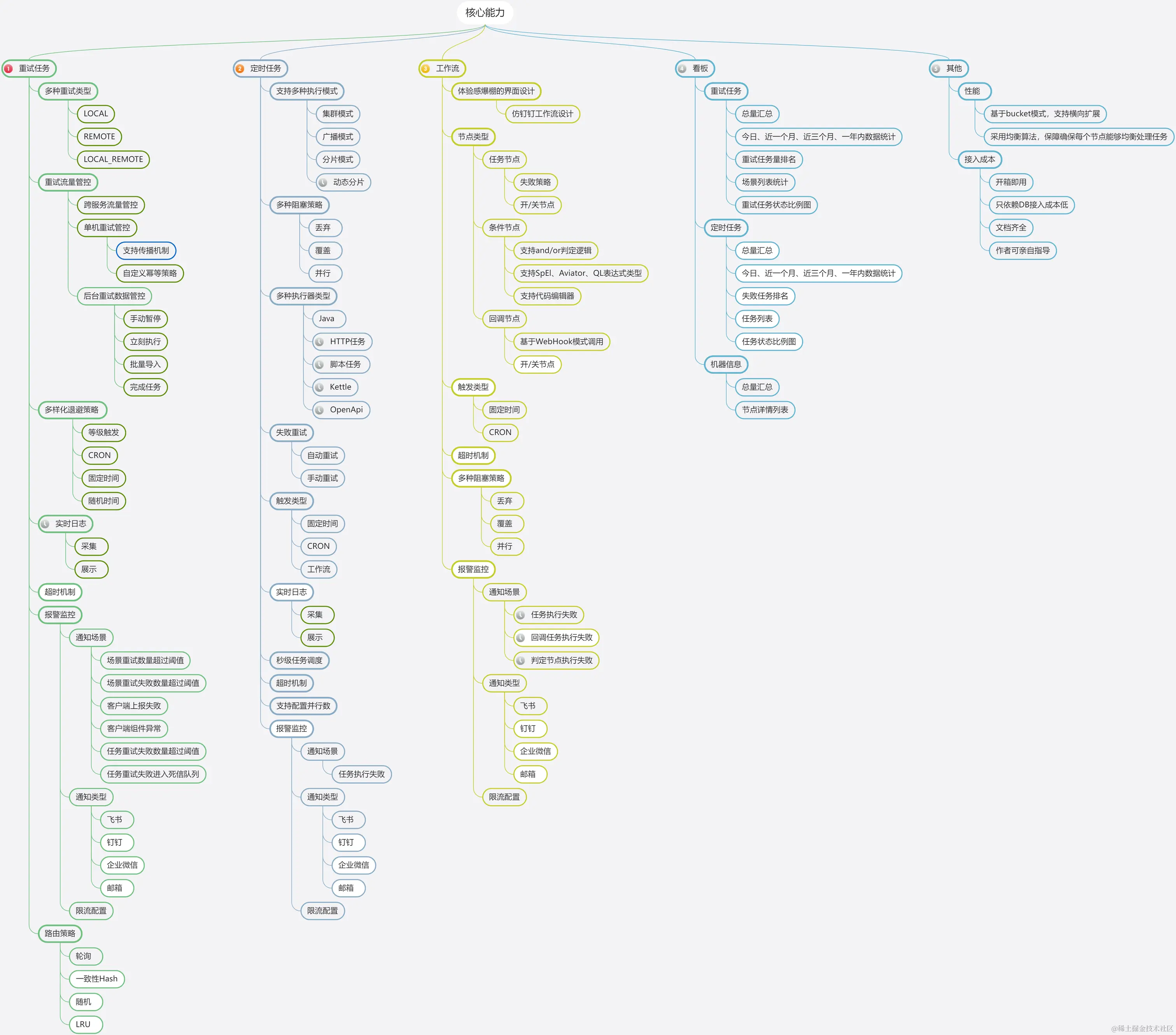 | 重试任务 | 不支持 | 不支持 | 不支持 | 1.支持本地&远程重试模式 2.支持各种常用组件的重试 比如dubbo/feign 3.支持多种退避策略 4.丰富的重试风暴管控手段 ...... |