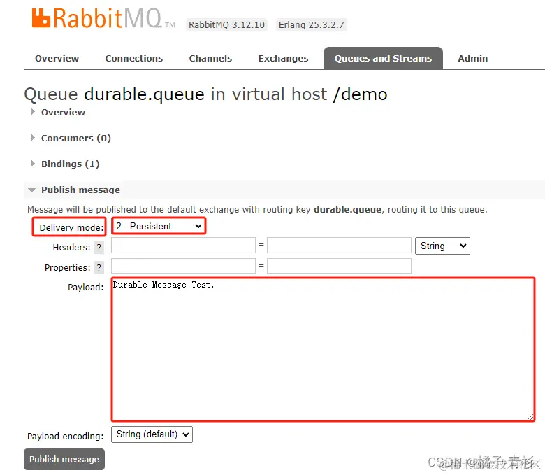 在控制台发送消息的时候,可以通过配置消息的属性来实现消息的持久化。消息持久化是将消息保存在磁盘上,即使MQ重启,消息也不会丢失。在发送消息时,可以选择Delivery mode参数来配置消息的持久化属性。