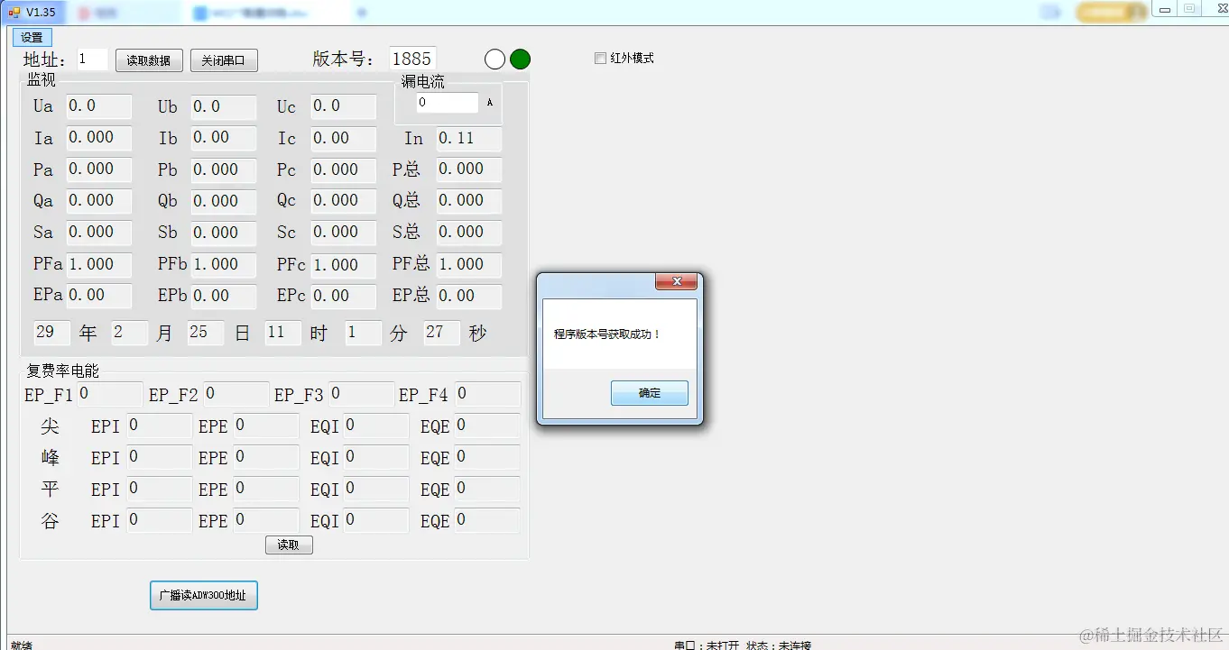 b.开启时如果提示COMX开启成功,点击“广播读ADW300地址”,显示版本号获取成功后右侧设置见面可视。