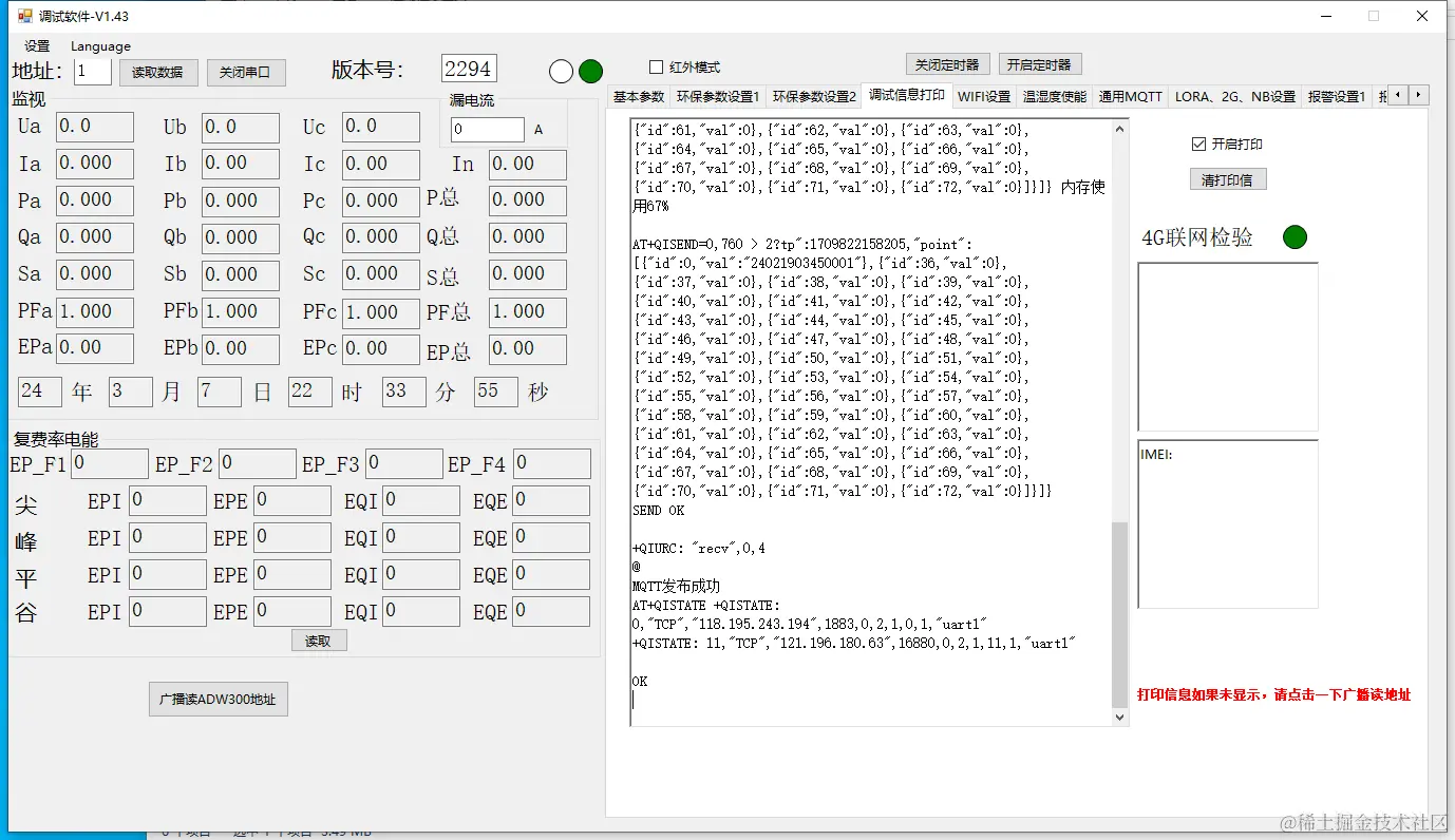 具体配置,在GPRS/NB设置栏设置,Mqtt服务器的ip和端口