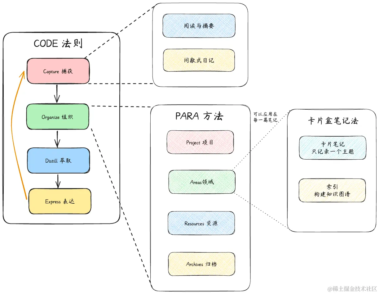 知识循环(CODE 法则):Capture -> Organize -> Distill -> Express: