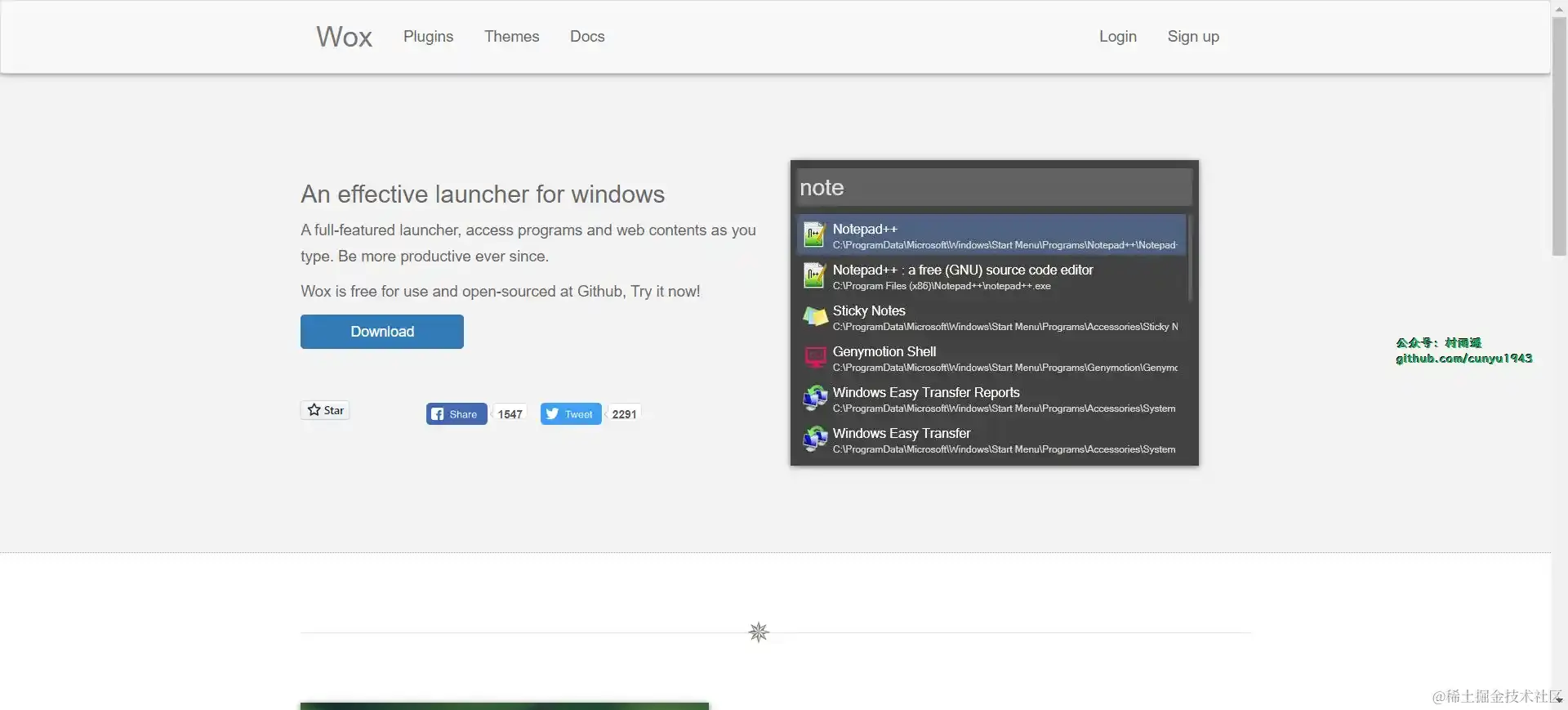 一款快捷启动工具软件,可以搜索你电脑上的程序/文件。。通过快捷键呼出搜索框,输入关键词快速匹配出对应软件并启动。配合插件甚至可以打开网页、翻译单词等。