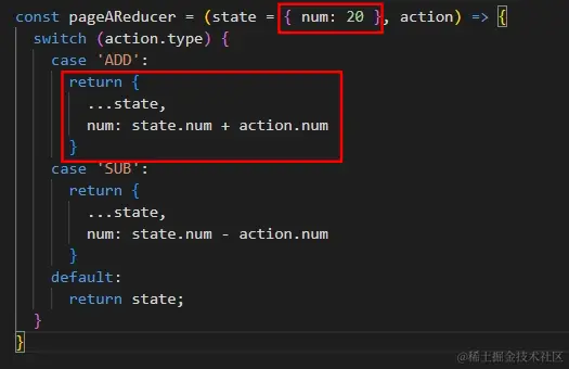const pageAReducer = (state = { num: 20 }, action) => {
