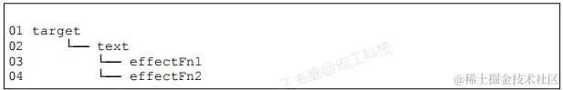 - 上图中的Set 数据结构所存储的副作用函数集合称为 key 的依赖集合