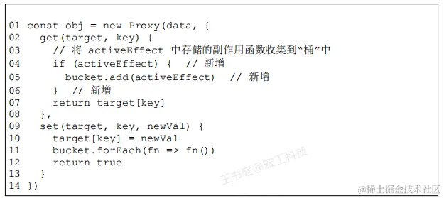 - 创建用于存储副作用函数的桶 bucket,它是Set 类型