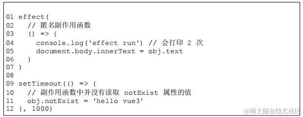 - 定时器内语句的执行不应该触发匿名副作用函数重新执行