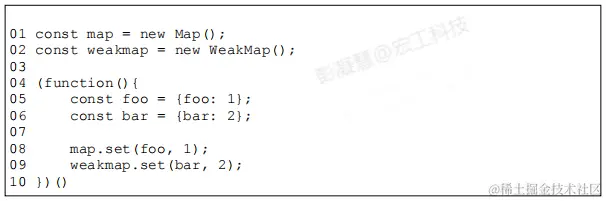 - 对于对象foo ,它仍然作为 map 的 key 被引用着,因此垃圾回收器不会把它从内存中移除,仍然可以通过map.keys 打印出对象 foo