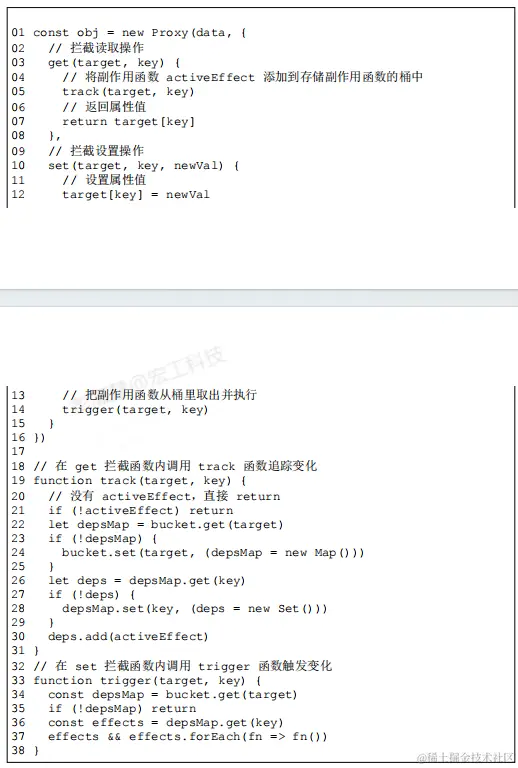 - 将在 get 拦截函数里把副作用函数收集到“桶”的这部分逻辑封装成为track函数