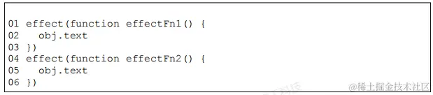 - 匿名副作用函数内部读取了字段 obj.text 的值,其与字段 obj.text 之间会建立响应联系