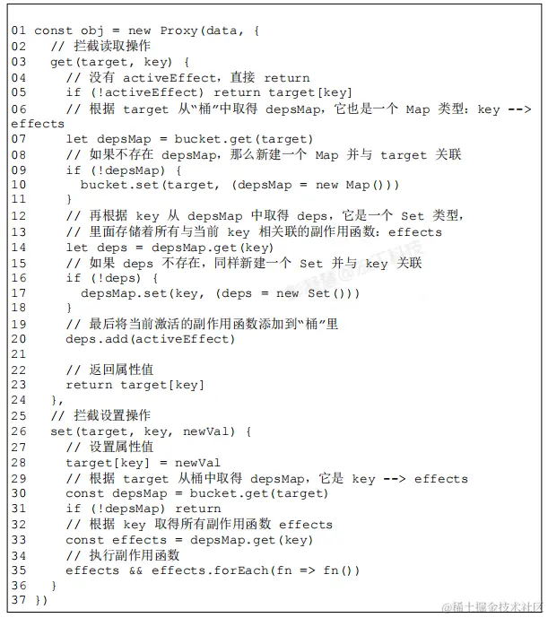 - 在 get 拦截函数内应该把 activeEffect收集到“桶”中