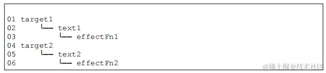 - 不同的副作用函数中读取了两个不同对象的不同属性