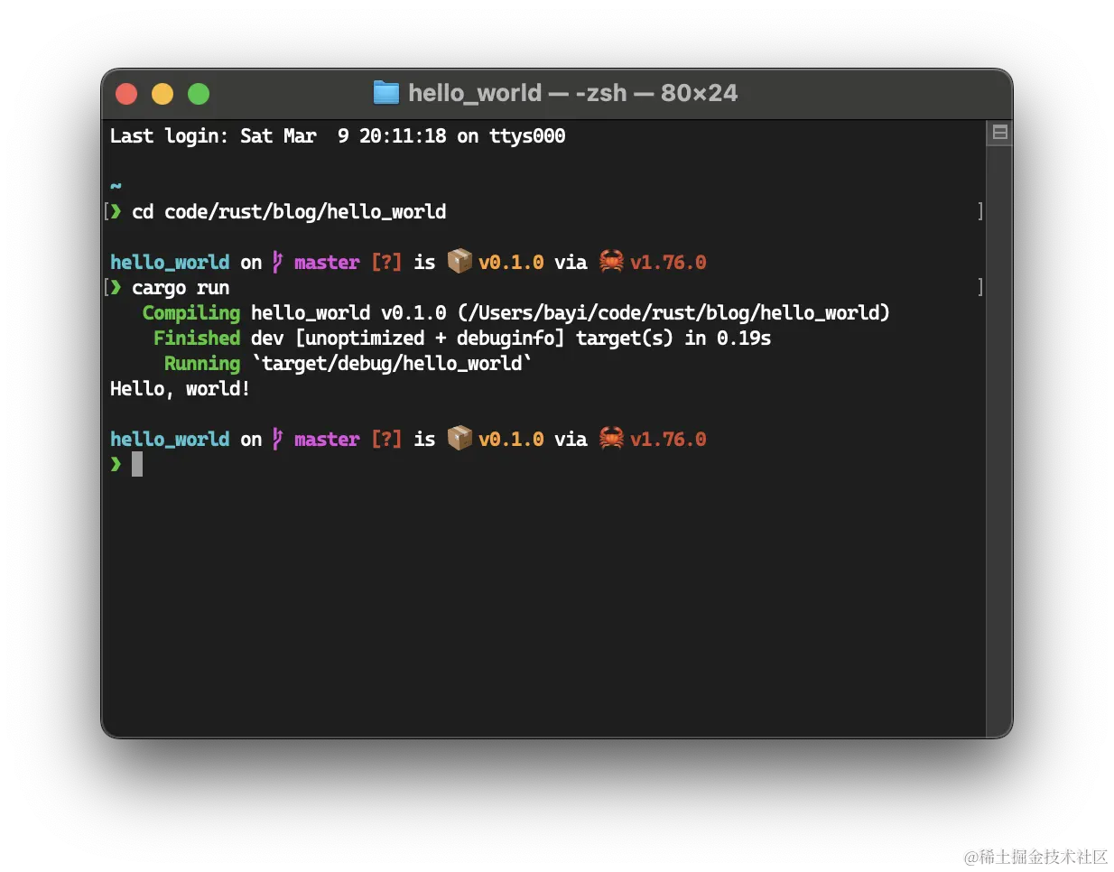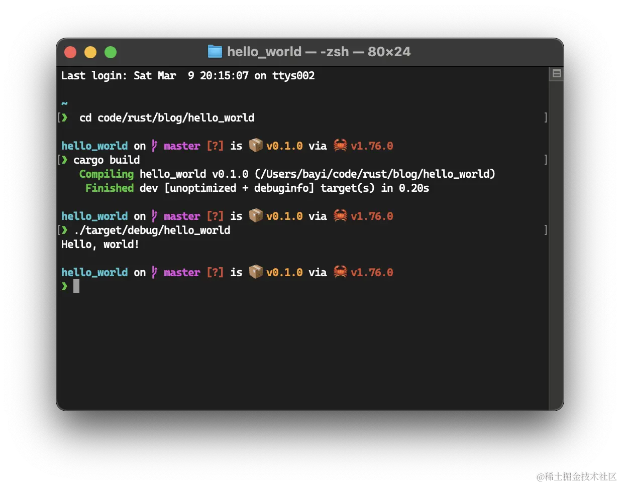 Compiling hello_world v0.1.0 (/Users/bayi/code/rust/blog/hello_world)