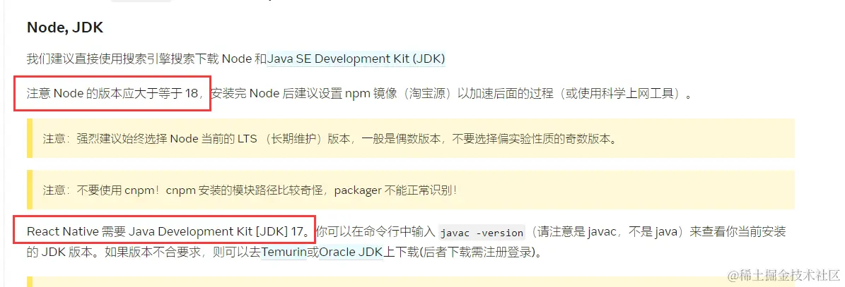 必须安装的依赖有:Node、JDK 、Android Studio(Gradel配置)