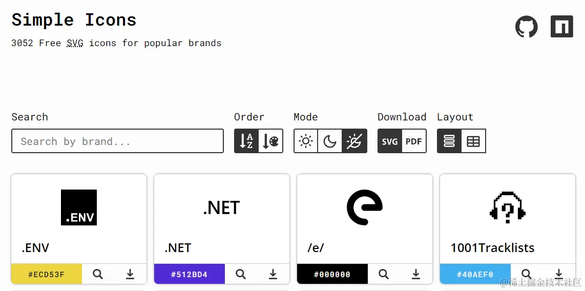 - Simple Icons:3000+ 流行品牌的免费 SVG 图标。