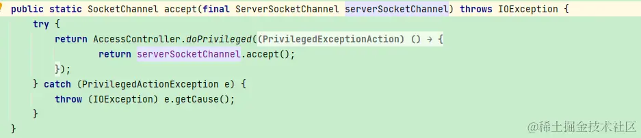 SocketChannel ch = SocketUtils.accept(javaChannel());