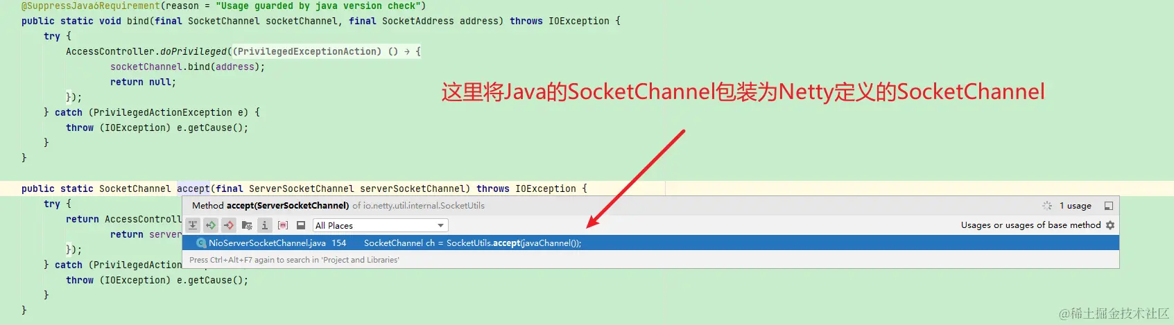 那也就是看SocketUtils这个调用,点进去看发现这个类果然在Netty的包里面: