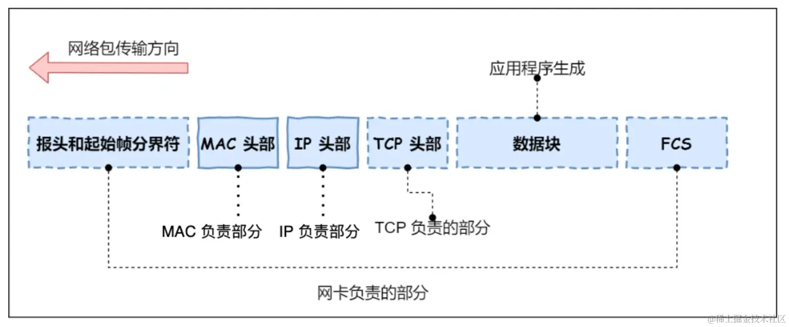末尾的 FCS (帧校验序列)⽤来检查包传输过程是否有损坏