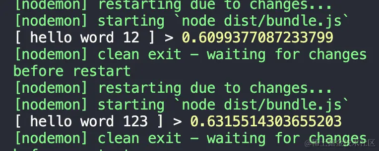 nodemon dist/bundle.js,没有的话全局安装下npm install -g nodemon,这样每次变更时可自动运行