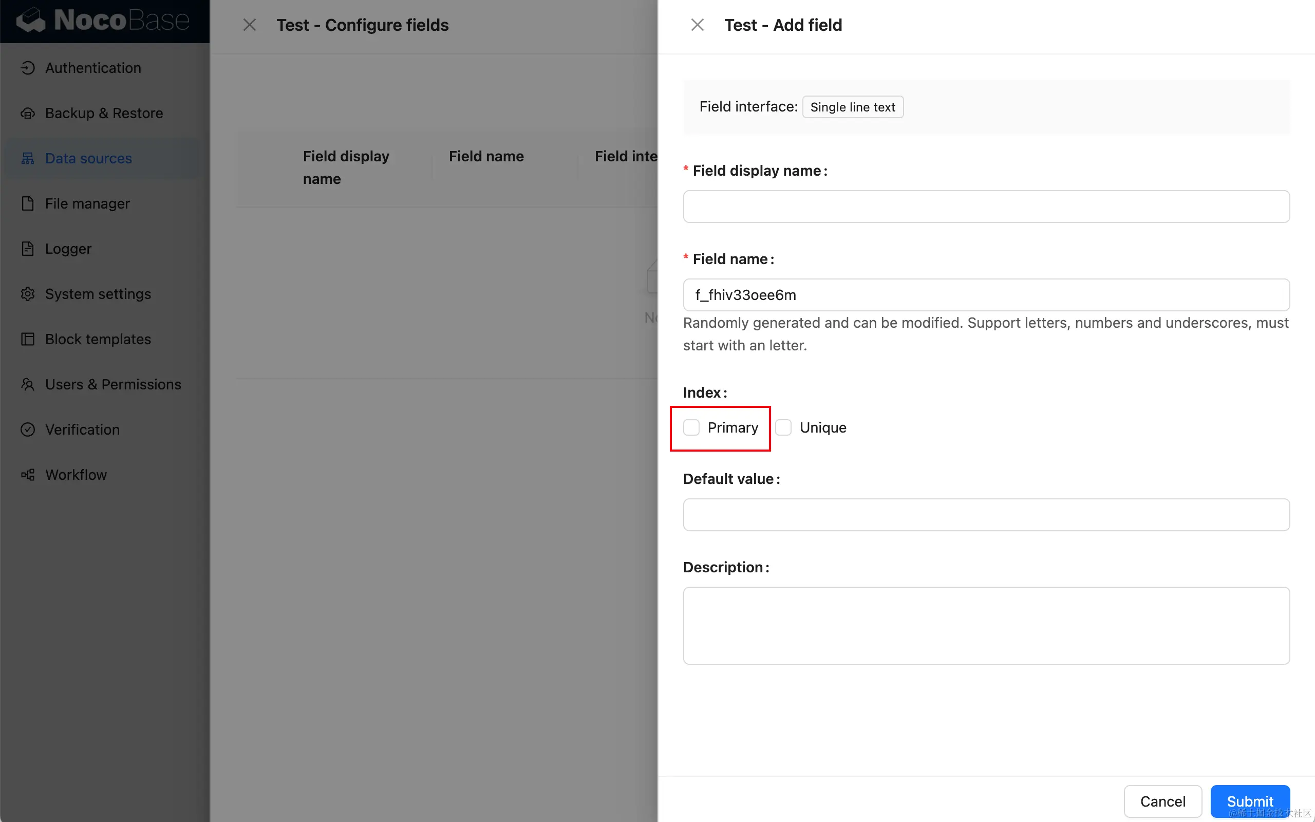 单行文本字段也可以作为主键