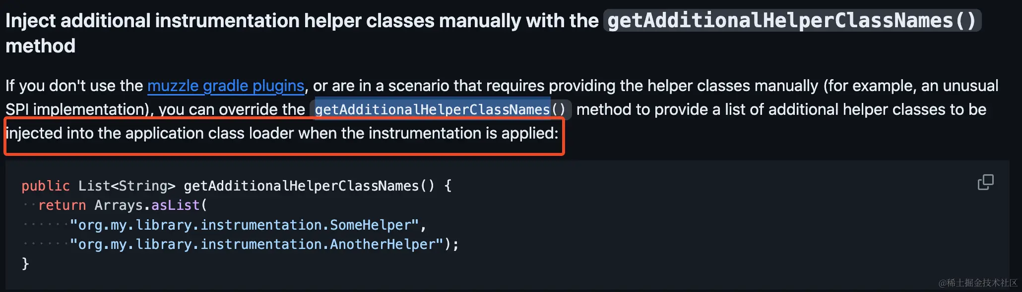 发现我们需要重写 getAdditionalHelperClassNames函数,用于将我们外部的一些工具类加入到应用的 class loader 中,不然在应用在运行的时候就会报 NoClassDefFoundError 的错误。