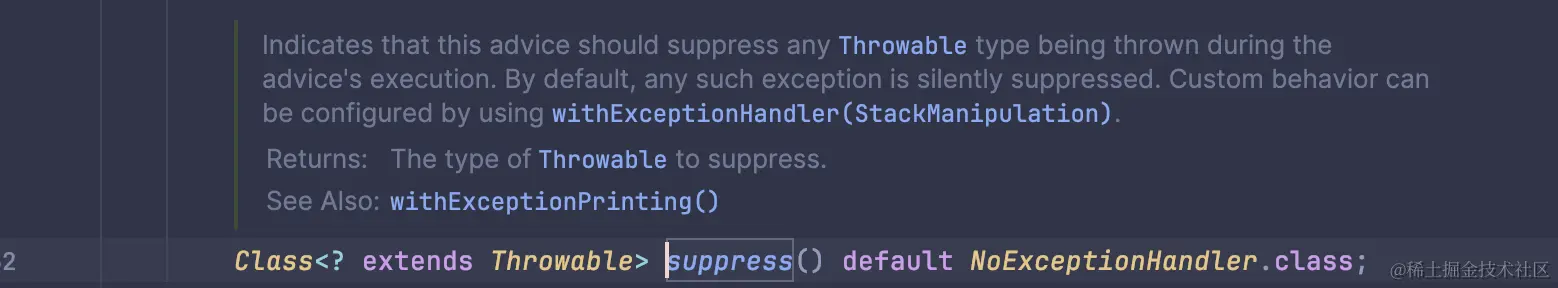 比如这样:@Advice.OnMethodExit(suppress = Throwable.class)