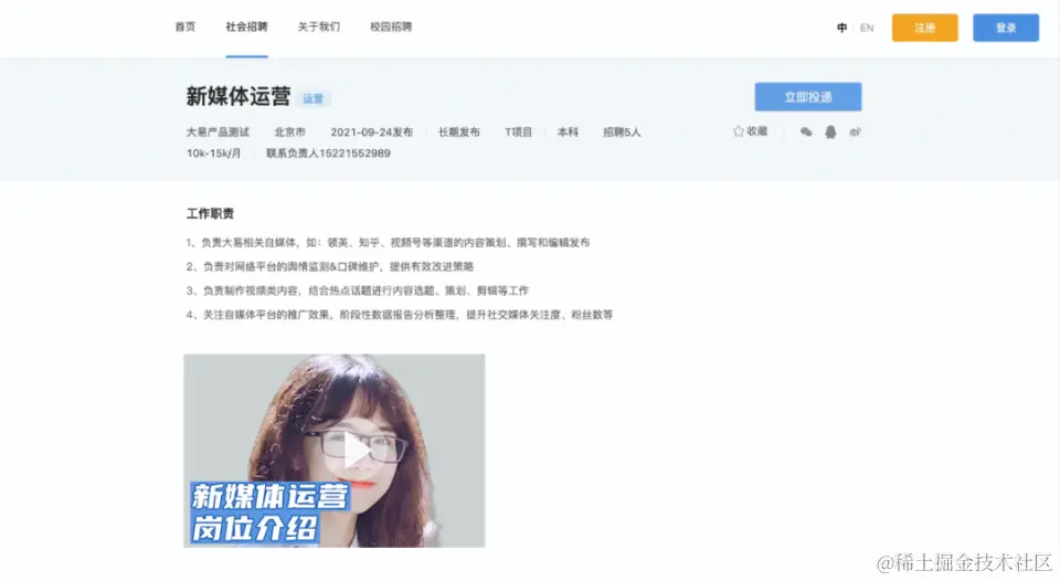 丰富的视频JD信息如何传播?依托用友大易招聘云的「视频JD」功能,企业可以便捷发布视频化JD,以更生动的表达吸引优秀人才。