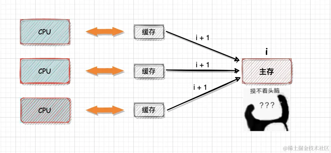CPU都有自己的L1、L2、L3缓存,CPU会将常用的数据,从主内存同步到缓存中,以此来提高数据的访问速度。如果CPU修改了缓存中的数据,就会从缓存更新到主内存中。