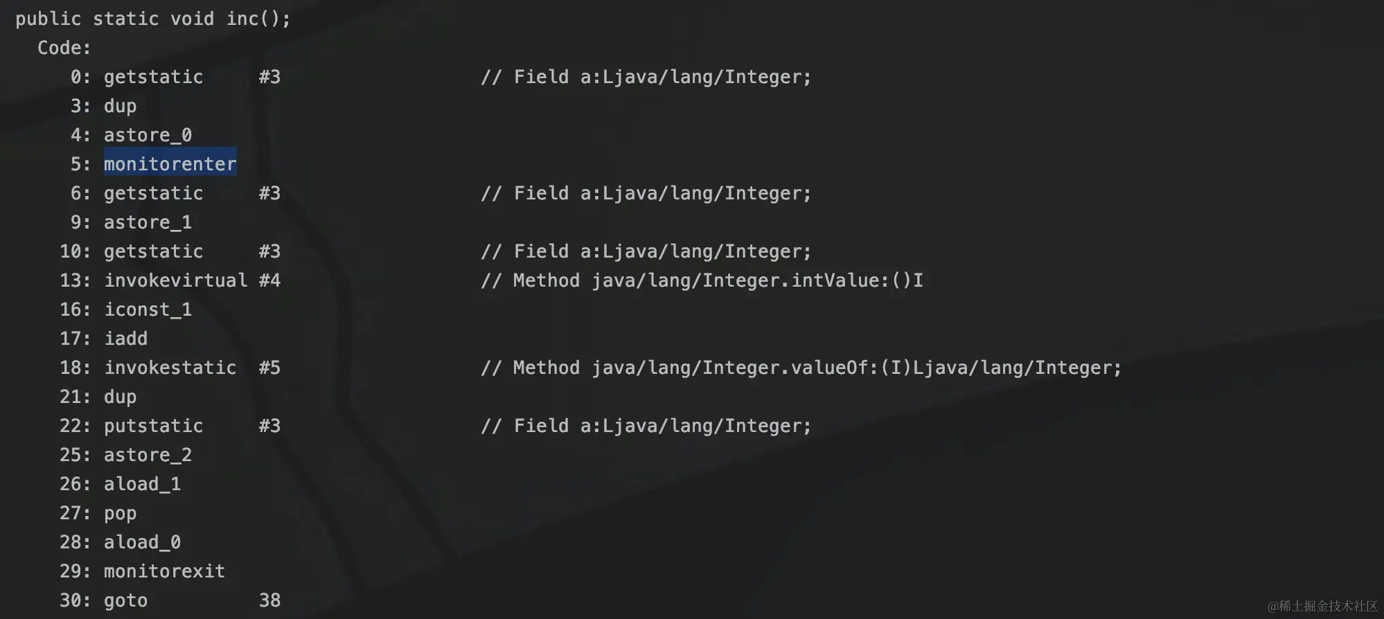我们知道a++不是原子操作,而放在synchronized代码块,通过使用monitorenter和 monitorexit,a++就变成了原子操作,以此来保证数据的可见性。以下面代码举例: