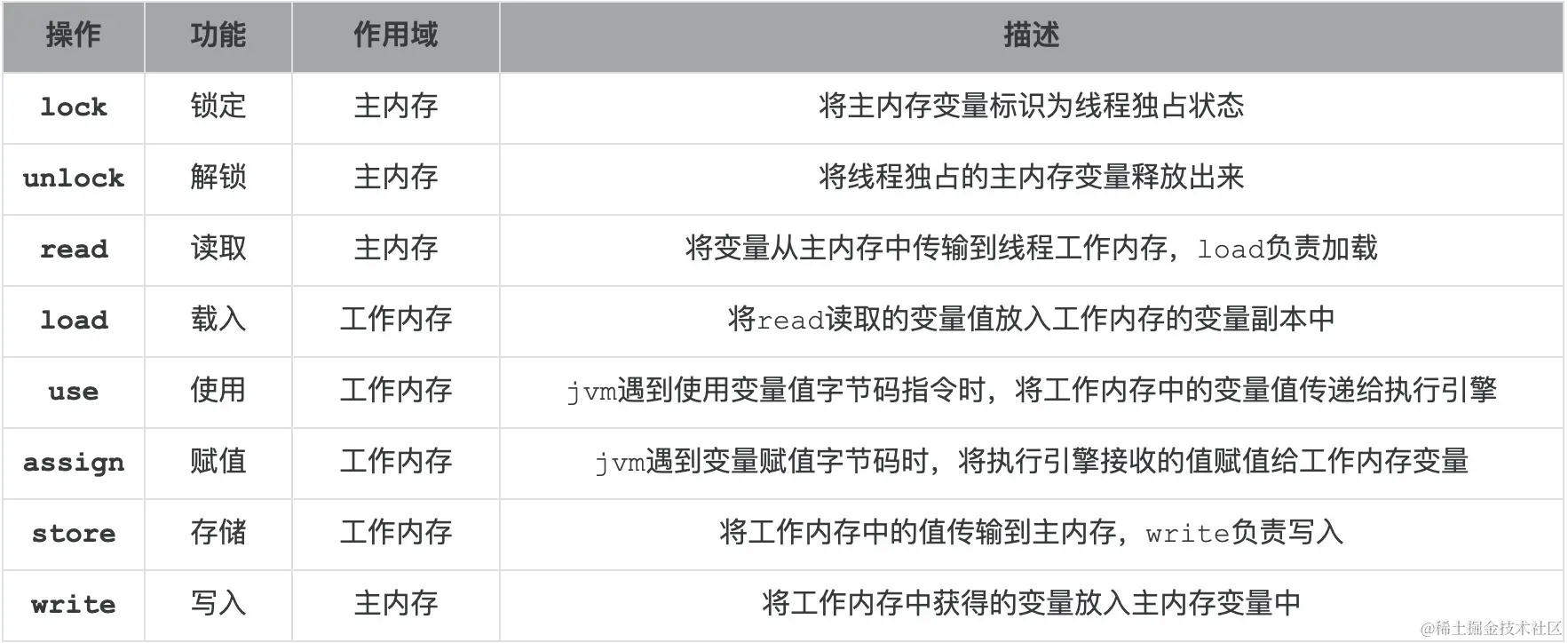 - 一个变量被lock后,会清空所有工作内存中此变量的值。再次使用需要重新load、assign来初始化