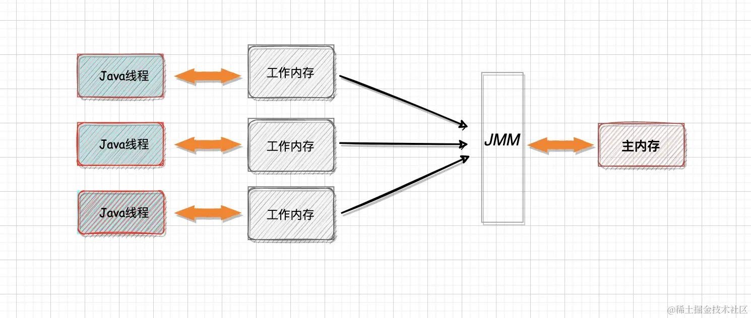 在学习jvm内存结构的时候,我们知道每个线程都有自己的虚拟机栈,而线程的工作内存就是存放在该线程的虚拟机栈中,用于存储线程私有的数据。而主内存对应的就是多线程共享的Heap存放对象的数据部分。线程在执行过程中会将共享变量从主内存加载到自己的工作内存中进行操作,然后再将结果写回主内存。
