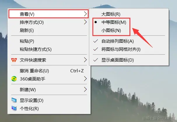 第1种方法:更改图标大小