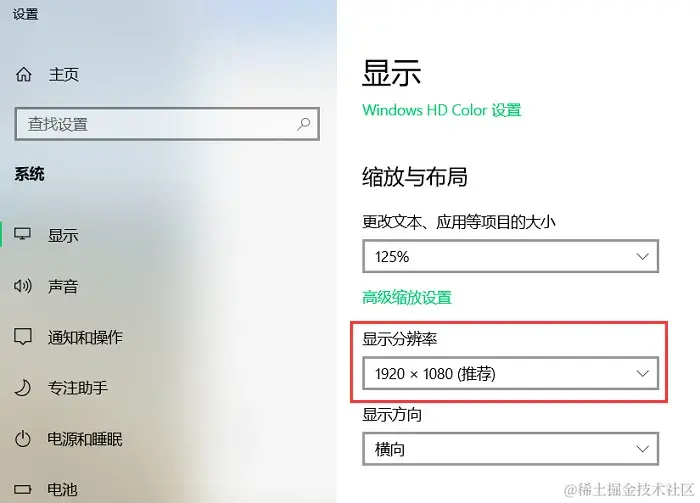 步骤2:在 【显示】 界面下滑,找到 【显示分辨率】 ,使用合适自己电脑的分辨率。