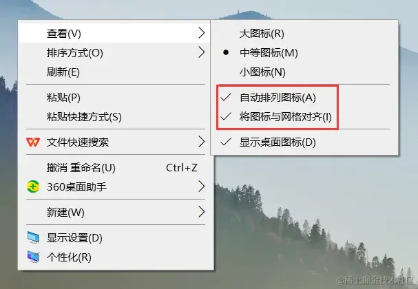 在桌面上右键单击,选择 【查看】 ,然后确保 【自动排列图标】 和 【将图标与网络对齐】 选项是勾选状态。如果已经勾选了这些选项,您可以尝试取消勾选然后重新勾选,以重新设置图标布局。
