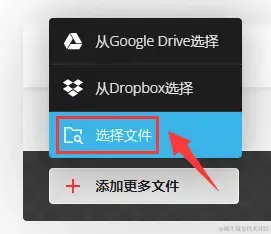 Step 1:打开您的网络浏览器,并输入Convertio的网址。点击 【选择文件】 ,上传音频,也可以在 【添加更多文件】 这里加入更多需要转换格式的音频文件。