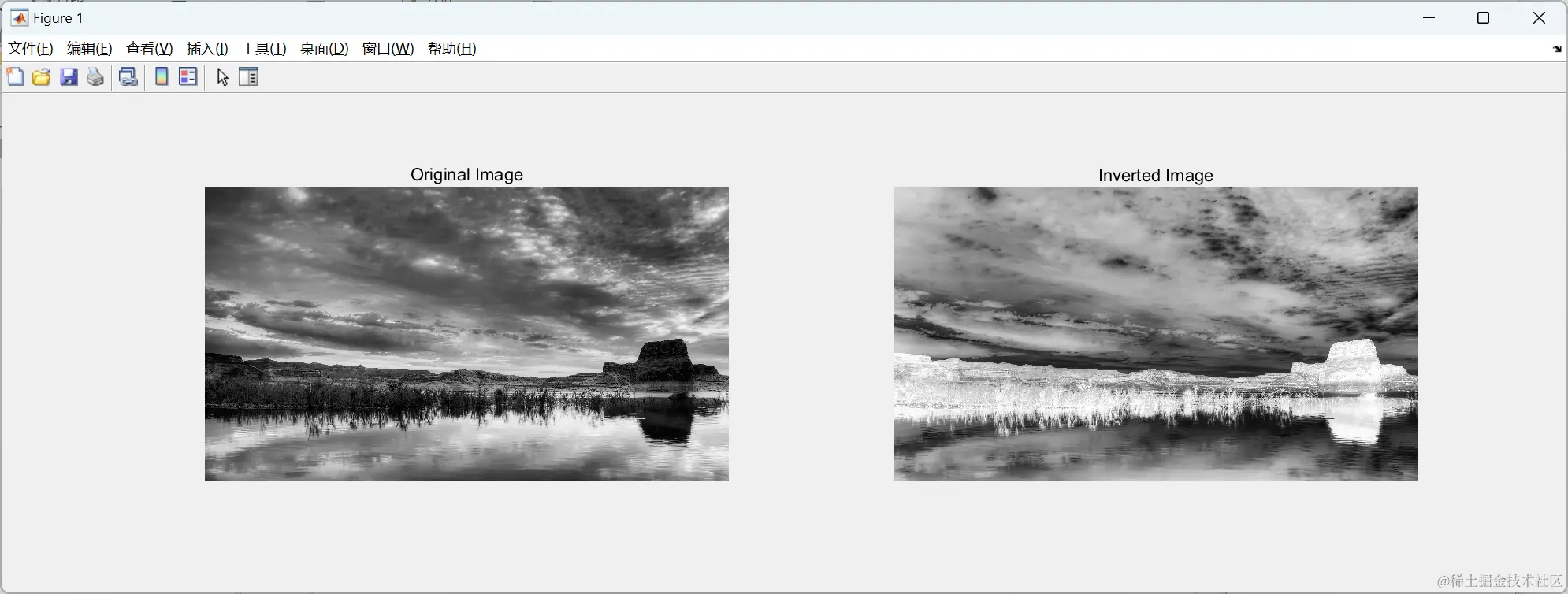 % 在同一窗口内并排显示原始图像和求反处理后的图像