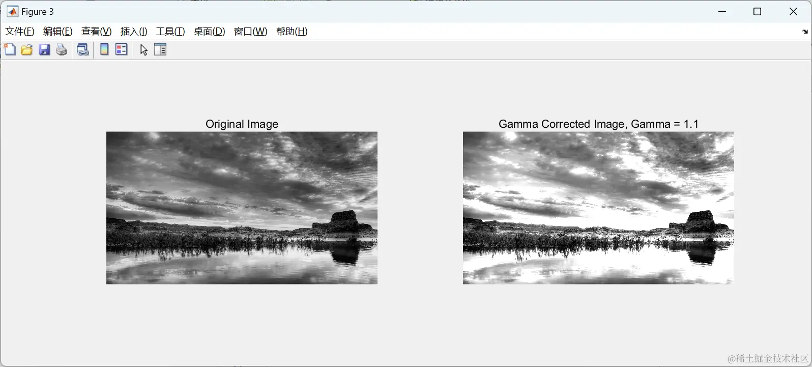 % 在同一窗口内并排显示原始图像和Gamma处理后的图像