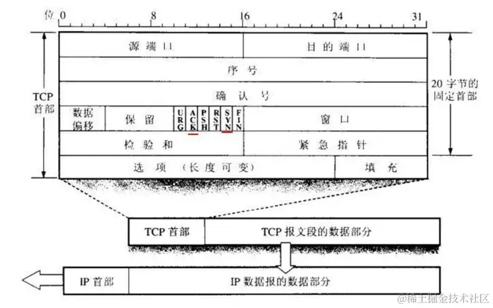 - TCP 首部最小长度为 20 字节,最大长度为 60 字节