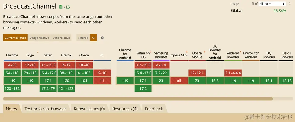 在兼容性的方面,localStorage是支持性最好的,抛开浏览器支持性来说,BroadcastChannel是个不错的解决方案。即时通信、随时关闭频道、不会产生因为localStorage不及时清理而引起的问题。