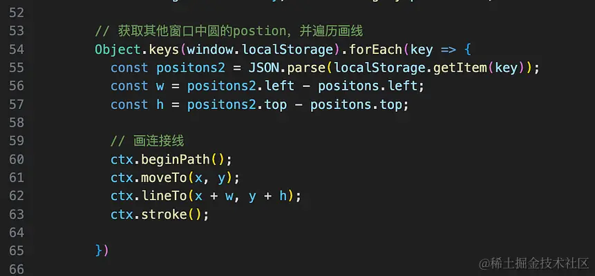 遍历其它窗口存在storage里的position,然后遍历,计算相对自己窗口圆心的横纵间距,最后画线。