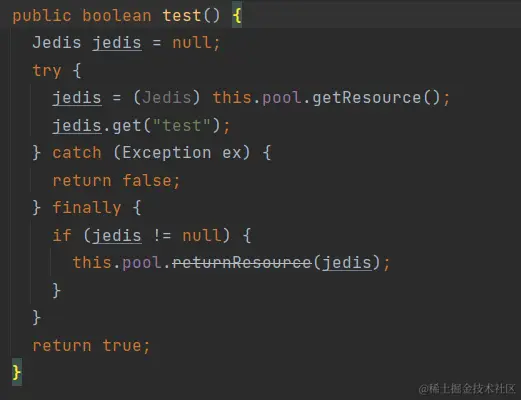 后面发现redis挂了之后也没影响业务的原因是因为旧的框架使用了简易哨兵模式:开启一个线程检测redis心跳,如果连接不上就把状态设为不可用,调用redis方法就会直接返回,这样就不会报错或者卡住业务,如果redis连接正常则正常使用。