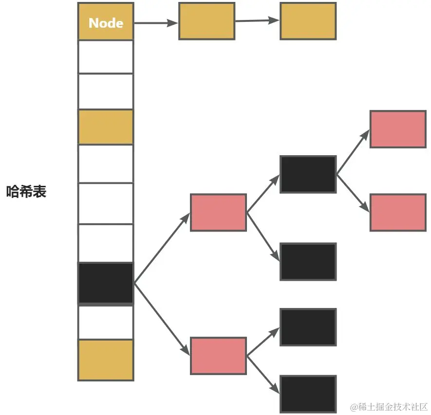 HashMap也是这样处理哈希冲突的,只不过它内部还做了一些优化操作,比如当链表太长的时候,为了加快查找的速度,就会把链表转化成红黑树(平衡二叉树)来存储。