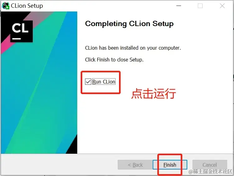 5.安装完成后,勾选 Run Clion,点击 Finish 运行软件: