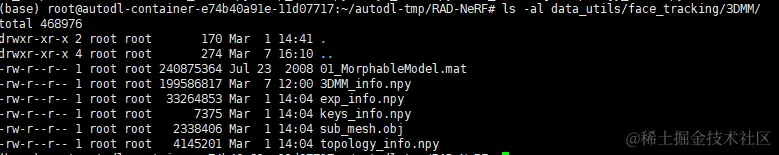 # 3. 下载人脸模型,并把人脸模型 01_MorphableModel.mat 放在 data_utils/face_tracking/3DMM/ 目录下